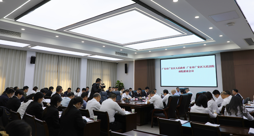 近日,广安区人民政府与广安区人民法院召开府院联席会议。区委副书记、区长何晓波出席会议并讲话。区政府副区长、区公安分局局长罗诚主持会议。区人大常委会副主任罗明轩,区政协副主席李顺英,区法院党组书记、院长张凡平及各区级部门、各乡镇(街道)主要负责人参加会议…