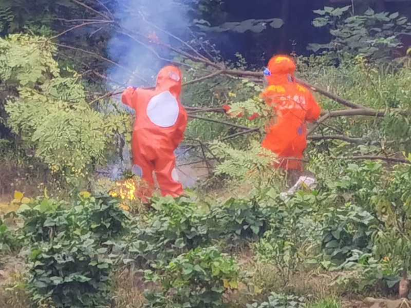 四川法制在线达州讯 近日,达州市达川区管村派出所接到多起马蜂蛰伤的求助警情,蜂患已对他们的日常生活造成一定的影响。为有效保障辖区群众生命财产安全,消除辖区安全隐患。管村派出所民警联合辖区蓝天救援队,运用专业设备,对辖区重点居民区及道路周边的马蜂窝隐患问题,开展清理工作,共摘除马蜂窝5个,赢得了辖区群众高度好评。