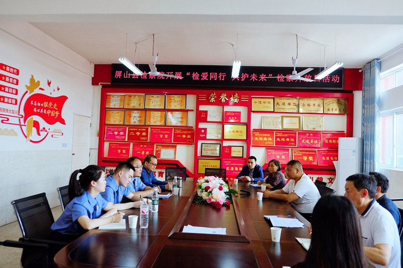 讲座结束后,黎勇主持召开座谈会,此次会议邀请了政协委员、人大代表、教师代表及家长代表10余人参加。会上,黎勇同志向参会人员详尽地报告了屏山县检察院未检工作开展情况,并就未检工作下一步规划提出努力方向和具体举措。活动最后,政协委员、人大代表及教师代表们针对未成年人保护提出了宝贵的意见建议。与会人员纷纷表示,此次检察开放日活动形式新颖、主题鲜明、效果突出,通过开展法治讲座和召开座谈会的方式让学生、家长增长了法律知识,增强了教师们对未成年人保护工作的重视程度。