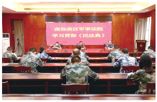 近日,随着备受关注的民法典审议通过,南部战区军事法院、战区党委机关和部队基层官兵随即开展“五个一”活动(即召开一次专题部署、抓好一次全员学习、赠送一批书籍资料、开通一个网上专栏、开展一次集中宣讲),通过线下线上互学互动等方式,营造学习氛围、强化宣传贯彻实效,在战区部队掀起学习宣传贯彻民法典热潮。