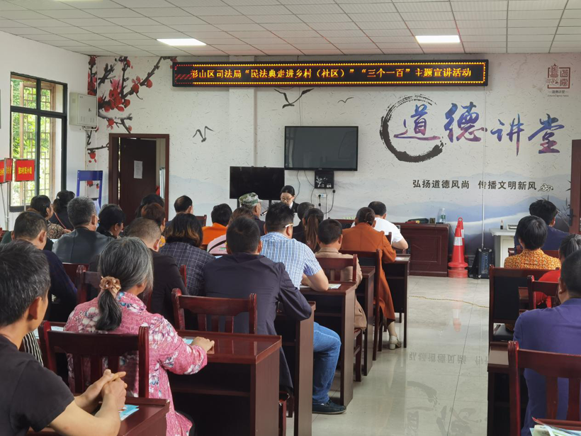 四川法制在线眉山5月18日讯 为贯彻落实省、市关于民法典普法宣传工作的部署要求,进一步加大《民法典》宣传力度,增强基层群众的法治意识和法治思维,5月17日,彭山区司法局与彭山区人民法院一同走进“全国民主法治示范村” ——黄丰镇团结村,开展“民法典进乡村(社区)…